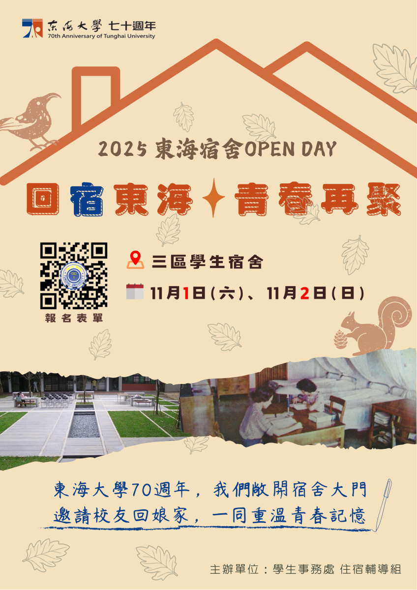 Tunghai’s 70th anniversary is here, and we’re opening the dorm doors again!
