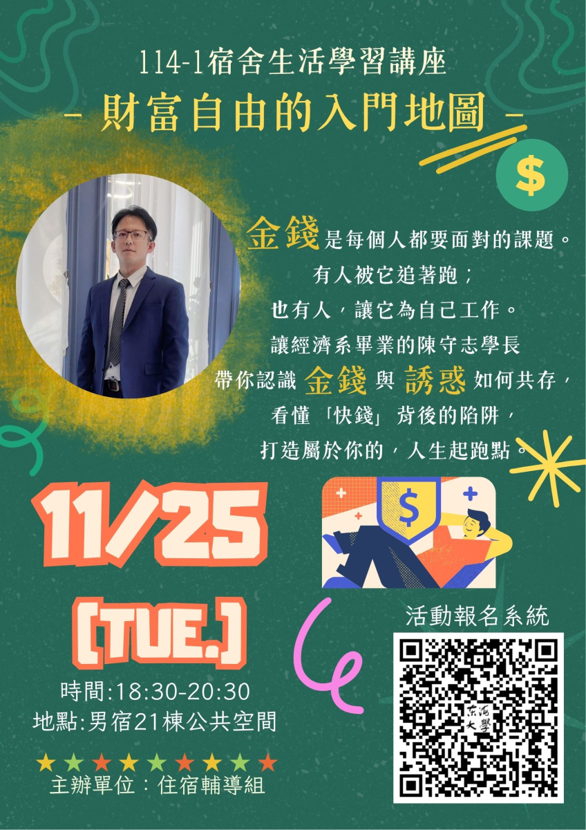 【活動資訊】宿舍生活系列講座「 財富自由的入門地圖」