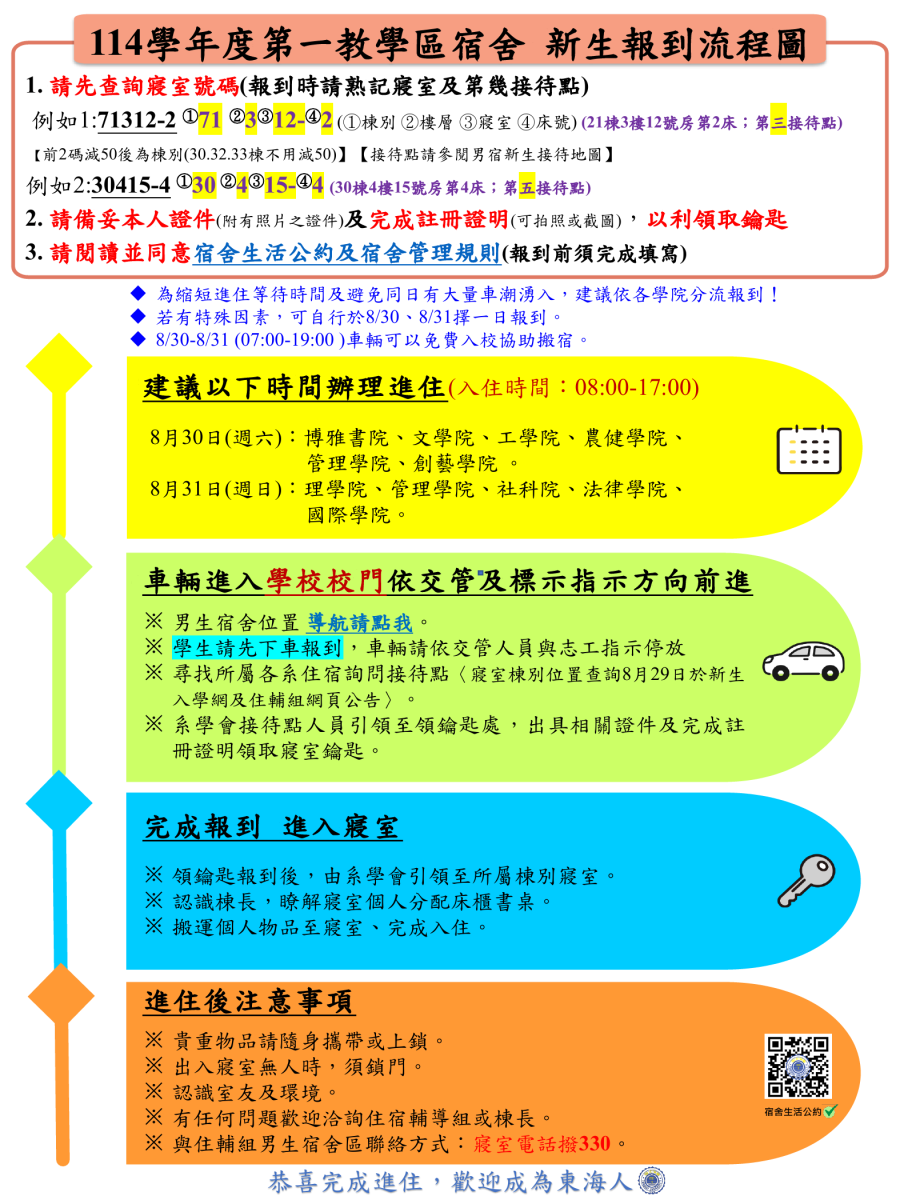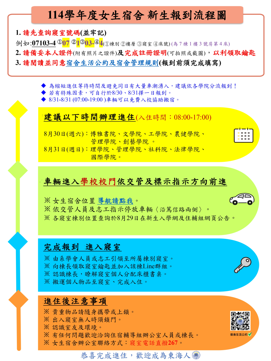 114學年度住宿新生,請於入住前詳閱以下重要資訊: